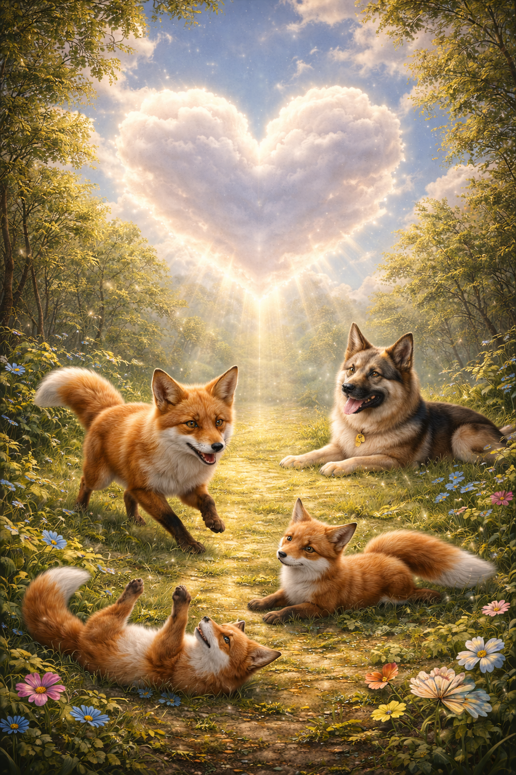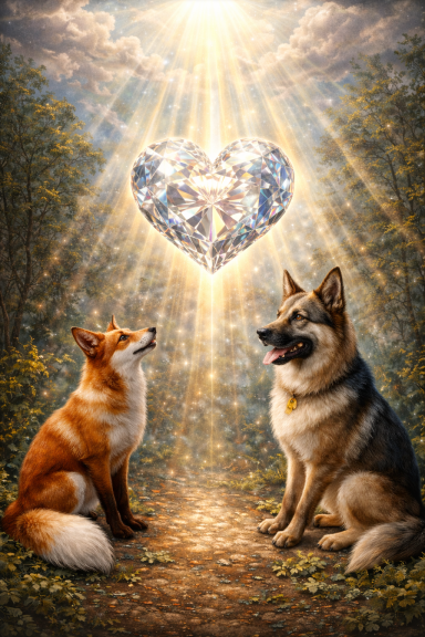 Besonderheit: Diamantgeschnitztes Herz, gehütet von Schäferhund und Fuchs