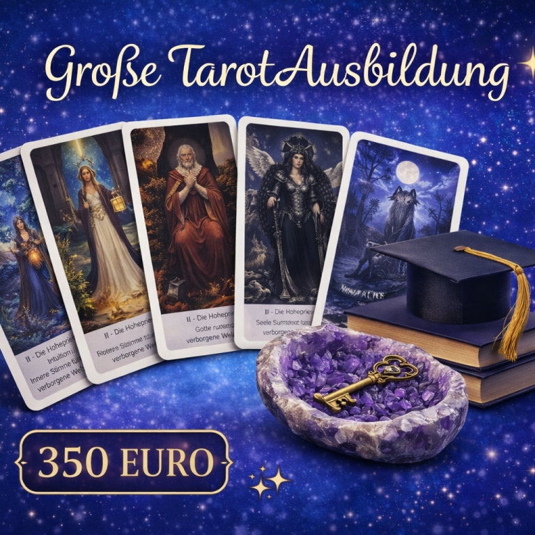 Du lernst nicht nur Tarot – du lernst, Energien zu lesen, Zusammenhänge zu erkennen und Botschaften klar zu deuten.
