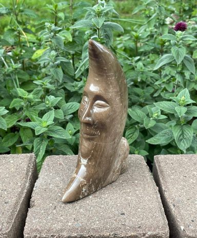 Diese besondere Mondgravur aus versteinertem Holz verbindet die Kraft der Erde mit der Energie des Himmels.