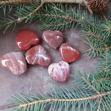 Die warme rötliche Farbe erinnert an Lebenskraft und Herzenergie – eine harmonische Verbindung von Erde und Gefühl.
